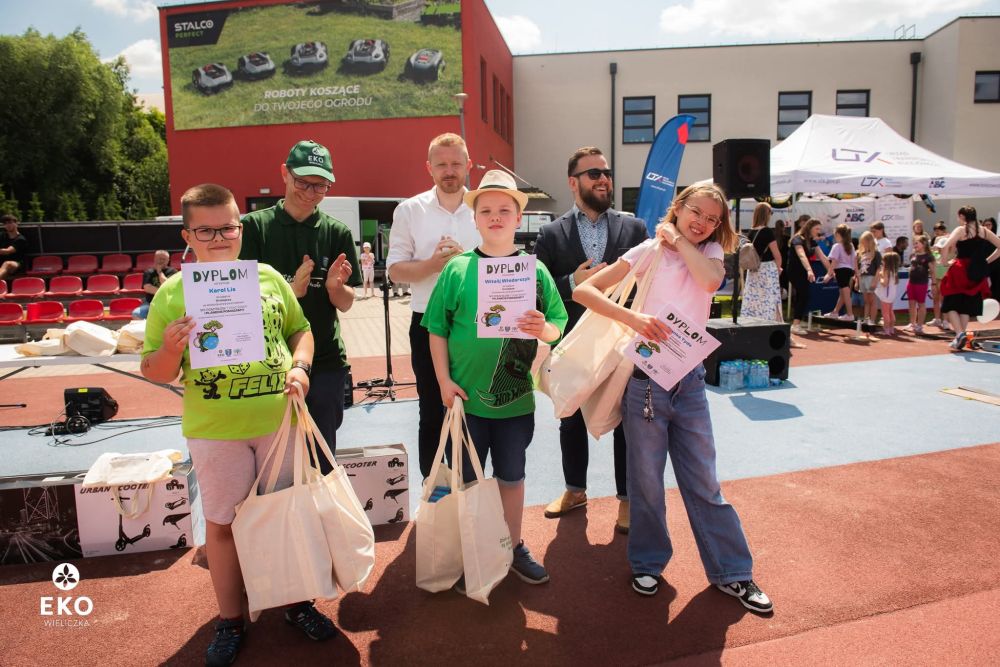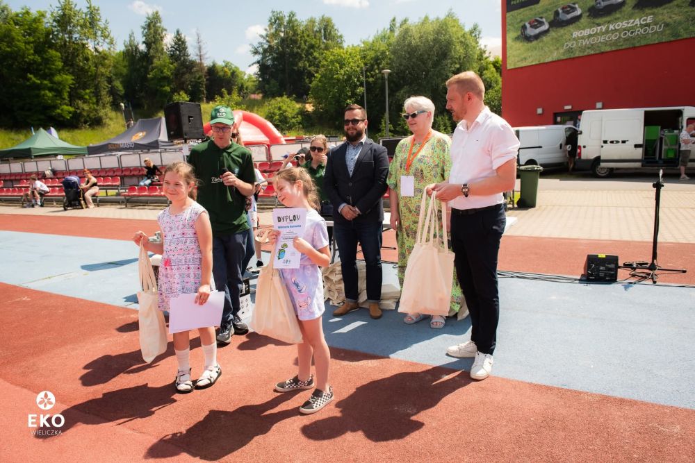 Wręczenie nagród miało miejsce podczas Pikniku Rodzinnego z Ekostrefą, który odbył się 14 czerwca b.r. na Wielickiej Arenie Lekkoatletycznej. Nagrody wręczyli: Krzysztof Kałuża - Dyrektor Wydziału Gospodarki Komunalnej i Ochrony Środowiska UMIG Wieliczka, Ilona Dziuba - Dyrektor Szkoły Podstawowej nr 1 w Wieliczce, Filip Banaś - Dyrektor Wielickiego Centrum Kultury oraz Ekodoradcy Gminy Wieliczka - organizatorzy konkursu.