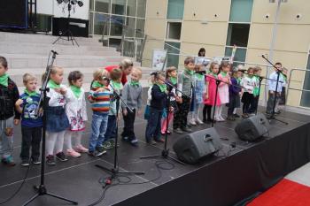 Dzieci wystąpiły z radosnym repertuarem, odśpiewały Hymn Przedszkolaka i bawiły się wspólnie z wesołym clownem.