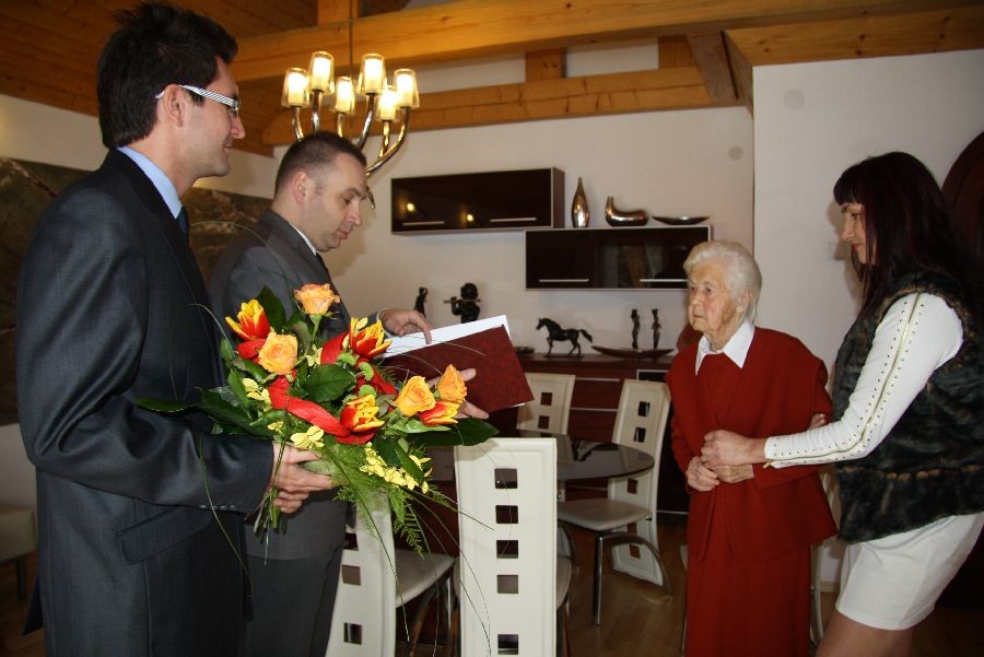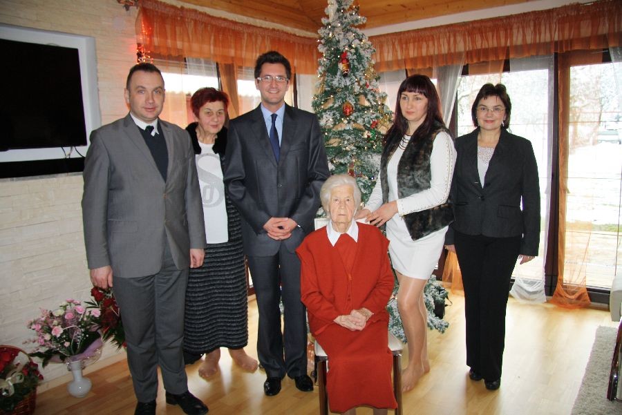 W poniedziałek 26 stycznia br. mieszkanka naszej gminy, Pani Katarzyna Kozłowska świętowała swoją setną rocznicę urodzin! Z tej okazji odwiedzili ją przedstawiciele Gminy Wieliczka: Rafał Ślęczka - Zastępca Burmistrza Wieliczki ds. Społecznych, Adam Marek Panuś – Sekretarz Gminy oraz Irena Kozińska – Zastępca Kierownika Urzędu Stanu Cywilnego. Goście wręczyli dostojnej Jubilatce kwiaty oraz odczytali listy gratulacyjne od Premier Ewy Kopacz, Wojewody Małopolskiego Jerzego Millera oraz Burmistrza Miasta i Gminy Wieliczka – Artura Kozioła.