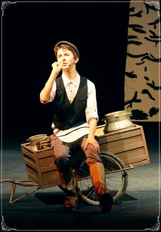 Od strony aktorskiej, spektakl był piekielnie skomplikowany. Młodzi aktorzy wykazali się ogromnym zaangażowaniem, ucząc się olbrzymiej ilości tekstu, analizując charakter swoich postaci, fabułę sztuki, jej przesłanie, a także poznając piękne, choć niełatwe do wykonania piosenki. Wszystko to było jednak częścią potrzeb – ‘schody’ rozpoczęły się w momencie prawdziwych prób, gdy zaczęliśmy pracować nad zrozumieniem swojego bohatera, umiejętnym wcieleniem się w niego i ‘pozostaniem w jego ciele’ przez prawie 3 godziny trwania ‘Skrzypka…’ (!). Gra z mnóstwem rekwizytów również okazała się nie lada wyzwaniem, podobnie jak sprawy typowo warsztatowe: pauzy, sposoby wypowiedzi, zawieszenia głosu, gesty, mimika, gagi, poruszanie się po odpowiednim rysunku scenicznym i dziesiątki innych spraw, które powodują, że przedstawienie ogląda się z autentyczną przyjemnością.