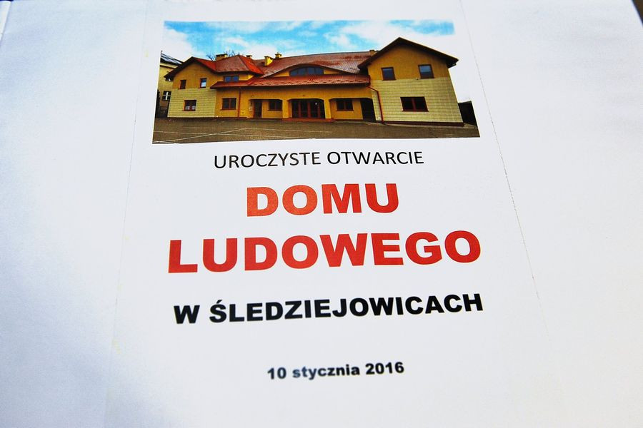 10 stycznia 2016 roku, w niedzielę, w Śledziejowicach odbyło się otwarcie rozbudowanego Domu Ludowego. Poświęcenia dokonał ksiądz Józef Marek, proboszcz parafii pw. Niepokalanego Poczęcia Najświętszej Maryi Panny w Strumianach, a symbolicznego przecięcia wstęgi mieszkańcy Śledziejowic wraz z Burmistrzem Wieliczki Arturem Koziołem i Przewodniczącym Rady Miejskiej Tadeuszem Lurańcem.