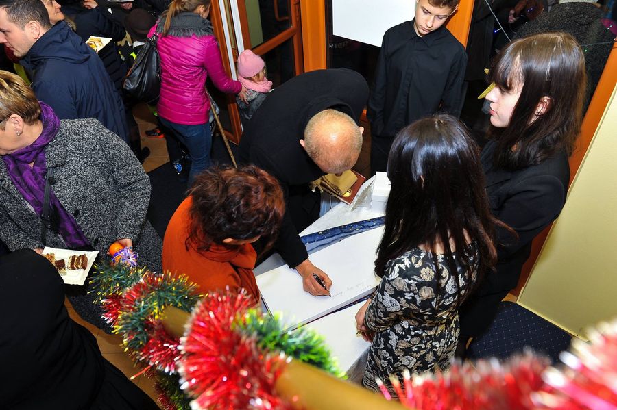 Podczas uroczystości dzieci ze Szkoły Podstawowej im. Jana Pawła II w Śledziejowicach przedstawiły jasełka. To bożonarodzeniowe przedstawienie przygotowane przez najmłodszych mieszkańców Śledziejowic wprowadziło wszystkich zebranych w świąteczny nastrój, którego wynikiem było wspólne kolędowanie. Można było również zwiedzić obiekt a także obejrzeć wystawę obrazów malarstwa Marka Burego.
