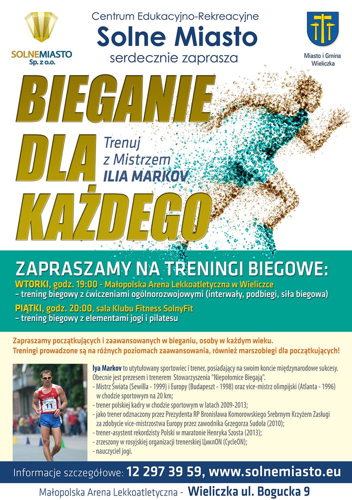 Zapraszamy wszystkich na treningi biegowe z ILIA MARKOV! Podejmij wyzwanie i dołącz do Nas, a przekonasz się, że warto! Bieganie jest naprawdę dla każdego!
