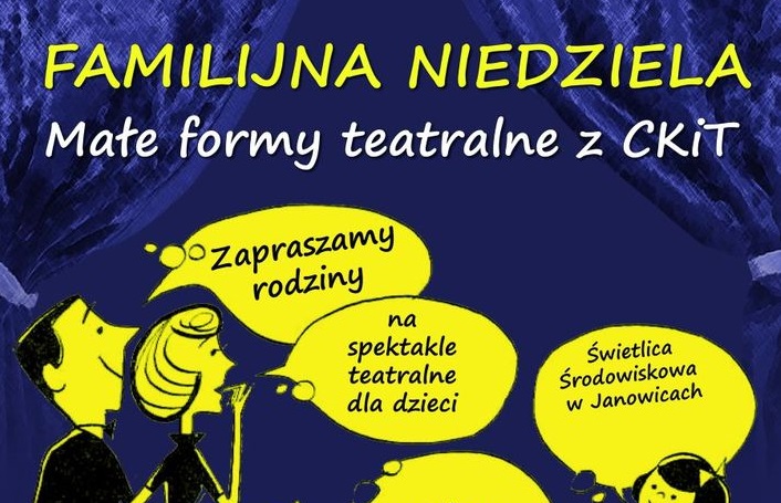 Zapraszamy wszystkie dzieci wraz z rodzicami na kolejną FAMILIJNĄ NIEDZIELĘ. Razem z Kopciuszkiem udamy się na wymarzony bal. Czy Kopciuszek zdąży wrócić do domu przed północą? Czy znajdzie zgubiony na balu pantofelek?