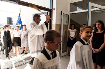 Uroczystość rozpoczęła się w samo południe Mszą Świętą w kościele parafialnym w Wieliczce – Krzyszkowicach. Dalsza część spotkania miała miejsce w budynku szkoły, gdzie poświęcenia rozbudowanej części dokonał ks. dr Wiesław Popielarczyk, Dziekan Dekanatu Wieliczka – Zachód, a wstęgę przecięli: burmistrz Artur Kozioł oraz dyrektor szkoły Maria Zadrożniak wraz z uczniami.