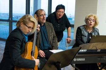 Przybyli na uroczystą kolację goście tradycyjnie połamali się opłatkiem, złożyli sobie życzenia oraz usiedli do wigilijnej wieczerzy. Wspólne kolędowanie poprowadziła Szkoła Muzyczna I stopnia w Wieliczce.