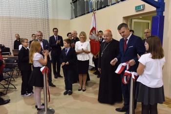 Uroczystości związane z oddaniem nowego budynku sportowego rozpoczęły się od odsłonięcia pamiątkowej tablicy i przecięcia wstęgi przez zaproszonych gości – Burmistrza Miasta i Gminy Wieliczka Artura Kozioła, Księdza Kardynała Stanisława Dziwisza, Proboszcza parafii św. Klemensa Księdza Andrzeja Kamińskiego oraz Dyrektor Szkoły Panią Elżbietę Obal-Dyrek, przedstawicieli Rady Rodziców i uczniów.