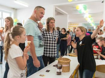 W niedzielę 20 maja odbyło się zatem IV Koźmickie Śniadanie, które tym razem zgromadziło ponad 900 osób, co po raz kolejny oznacza rekordową frekwencję – co nie było zaskoczeniem dla uczestników tego bezprecedensowego wydarzenia. To nie tylko spotkanie w gronie rodziny i przyjaciół przy dobrym jedzeniu. To wydarzenie, które wymyka się wszelkim schematom: organizatorzy w pełni zdają sobie sprawę, że sukces poprzednich Śniadań zobowiązuje, więc za cel stawiają sobie wdrażanie nowych, innowacyjnych rozwiązań. Dlatego też, każda kolejna edycja obok tradycyjnych elementów niesie ze sobą miłe niespodzianki dla odwiedzających. W tym roku głównymi atrakcjami był m.in. występ Młodych Talentów – zatańczyli uczniowie klasy III - Antonina Śliwa i Paweł Czarnecki. Uczniowie klas gimnazjalnych – aktorzy Szkolnego Teatru „Miniatura” pod czujnym okiem opiekunek (pani Doroty Marcinek-Tomana i pani Jolanty Kałuży) pokazali widowisko muzyczno-teatralne – spektakl „Z Amorem przez epoki”, który nagrodzony został gromkimi brawami. Odbył się także interaktywny Wielki Quiz o Jedzeniu za pośrednictwem aplikacji Kahoot.it, który wzbudził w graczach olbrzymie emocje. Pierwsze miejsce zajęła pani Agata Zając i w nagrodę otrzymała między innymi telefon komórkowy, który przekazała na cele charytatywne.
