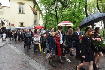 Członkowie delegacji reprezentujących m.in.: stowarzyszenia kombatanckie, Sejm i Senat RP, władze samorządowe województwa, powiatu i gminy, Kopalnię Soli „Wieliczka”, służby mundurowe, kluby i partie polityczne oraz szkoły, instytucje, stowarzyszenia i środowiska twórcze działające na wielickiej ziemi, złożyli kwiaty przy pomniku. W imieniu mieszkańców Miasta i Gminy Wieliczka wieniec złożyli: burmistrz Artur Kozioł oraz jego zastępcy – Agnieszka Szczepaniak i Piotr Krupa, a w imieniu Rady Miejskiej w Wieliczce - przewodniczący Tadeusz Luraniec wraz z Małgorzatą Krasoń.