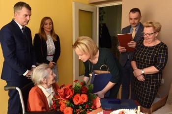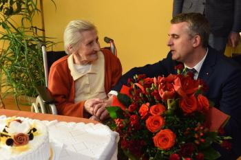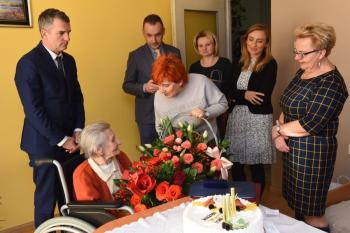 Tego dnia w kierunku dostojnej Jubilatki płynęły liczne życzenia i gratulacje. Osobiście złożył je burmistrz Wieliczki Artur Kozioł wraz zastępcą Agnieszką Szczepaniak, sekretarzem Gminy Adamem Markiem Panusiem oraz kierownikiem Urzędu Stanu Cywilnego Elżbietą Bujas.