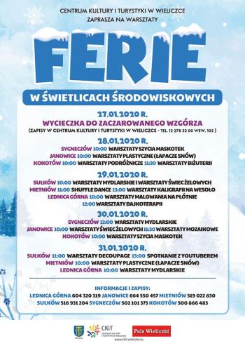 Szukacie pomysłu na zimowy wypoczynek w mieście dla swoich pociech? Centrum Kultury i Turystyki w Wieliczce zaprasza na Ferie 2020 – warsztatowe zajęcia dla dzieci w wieku 6-12 lat.