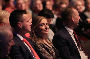 Burmistrz Artur Kozioł ze wzruszeniem wspominał śp. Zofię Batko: Ten wieczór zaplanowaliśmy inaczej, jednak życie pisze swoje scenariusze. Pani Zosia odeszła kilka dni temu, ale z pewnością była przygotowana na ten dzień, bo zawsze rzetelnie i skrupulatnie wykonywała swoje obowiązki. Wiem, że jest tu z nami dzisiaj i chce, żebyśmy radośnie spędzili ten wyjątkowy wieczór.