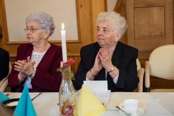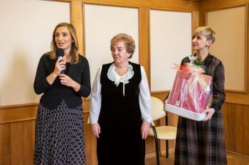 Burmistrz Artur Kozioł, który nie mógł być obecny na spotkaniu przekazał dla Pani Kazimiery kwiaty wraz z życzeniami z okazji jej urodzin. Gratulacje, życzenia, kwiaty i tradycyjne 100 lat dopełniły uroczystość.