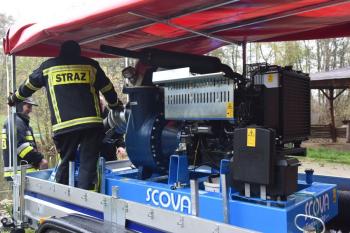 Pompa jest częścią wyposażenia magazynu przeciwpowodziowego obsługiwanego przez OSP Grabie.