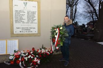 Wiązankę biało-czerwonych kwiatów w imieniu burmistrza Wieliczki złożył Adam Marek Panuś, Sekretarz Gminy Wieliczka. W miejscu pamięci zapalono również znicze.