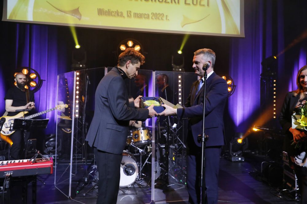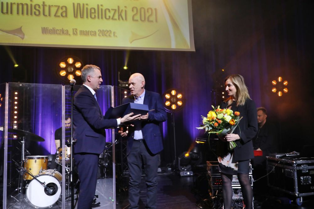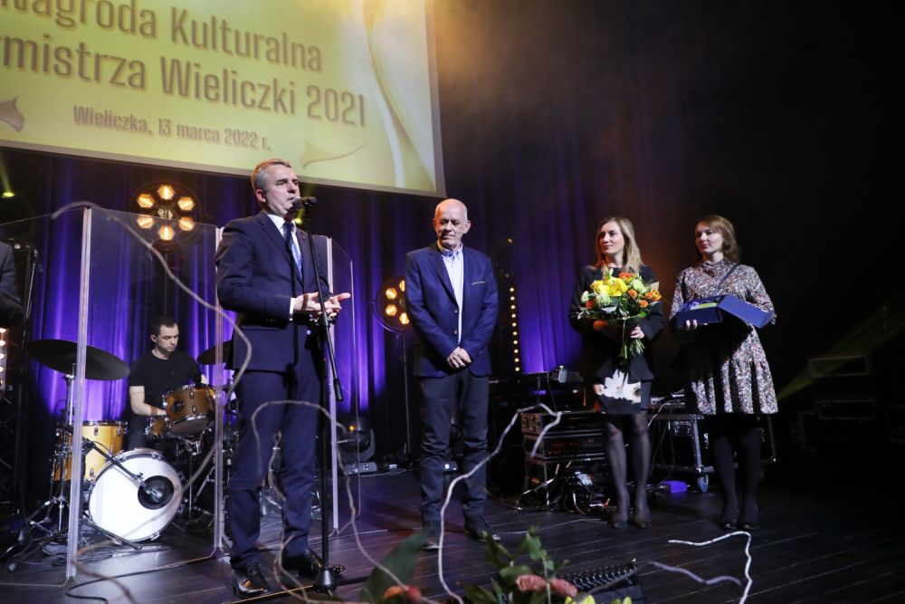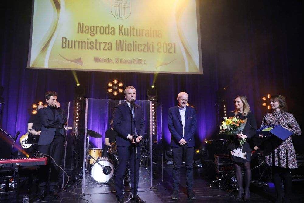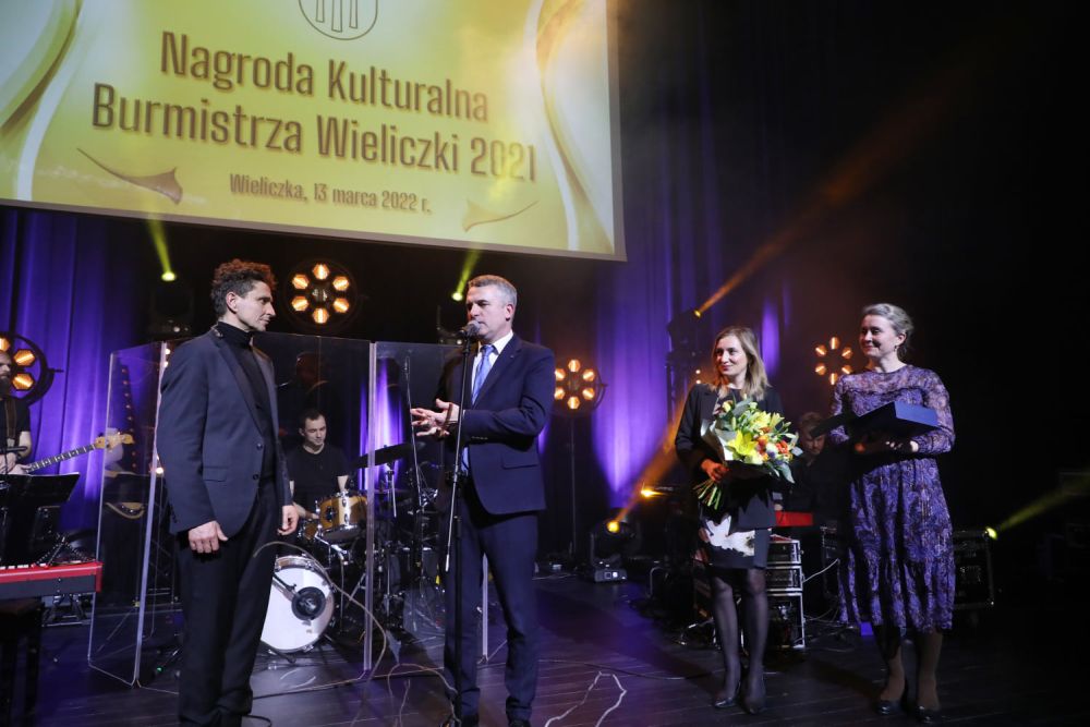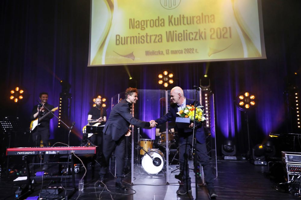 Tego wieczoru burmistrz Wieliczki Artur Kozioł wraz z Zastępcą Burmistrza ds. Społecznych Agnieszką Szczepaniak wręczyli wyróżnienia laureatom Nagrody Kulturalnej Burmistrza Wieliczki za rok 2021, które otrzymali: obecny na muzycznej scenie od 30 lat Janusz Radek oraz artysta-rzeźbiarz Paweł Janowski.