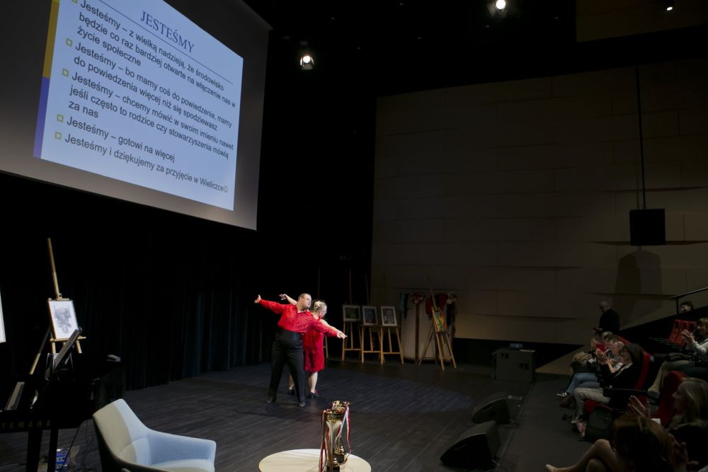 W kolejnej prezentacji pt. „Jesteśmy” Grażyna Banach Kociołek przedstawiła działania Stowarzyszenia „Tęcza” oraz sukcesy dzieci i młodzieży z zespołem Downa. Nasi wspaniali goście zadziwiali wyobraźnią, talentami malarskimi, tanecznymi oraz osiągnięciami sportowymi. Swoje pasje i dokonania zaprezentowali: Agnieszka Kociołek, pływaczka i narciarka, uczestniczka I edycji Down the Road, Szymon Grzech - uczestnik II edycji Down the Road, Maria Kalisz i Jerzy Godawski - Mistrzowie Polski w tańcu towarzyskim z roku 2020, Jagoda Litner - 4-ro krotna Mistrzyni Europy w pływaniu osób z zespołem Downa, zdobywczyni rekordu świata, Ferrara 2021, utalentowana plastycznie - wyróżniona na międzynarodowym biennale sztuk plastycznych osób niepełnosprawnych w 2019 roku.