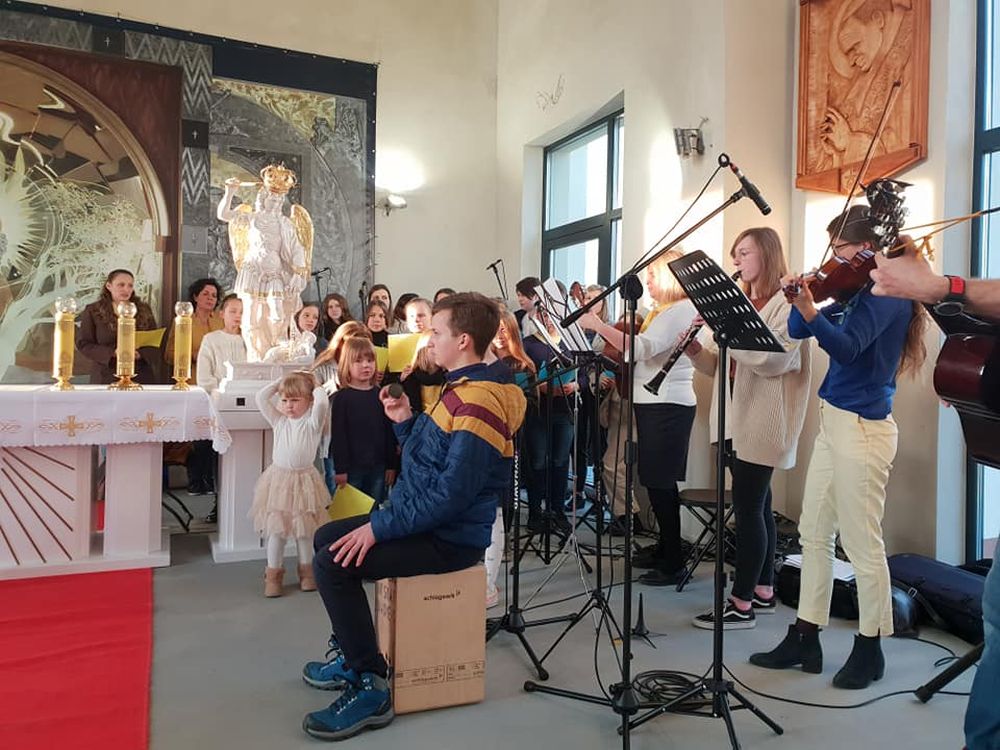 W sobotę, 9 kwietnia Schola Hosanna z parafii Strumiany prowadziła wspólną modlitwę o pokój w Ukrainie w Domu Młodych na Campus Misericordiae. Śpiew i modlitwa były prowadzone w języku polskim i ukraińskim. Modlitwie przewodniczył Franciszkanin o. Wacław.