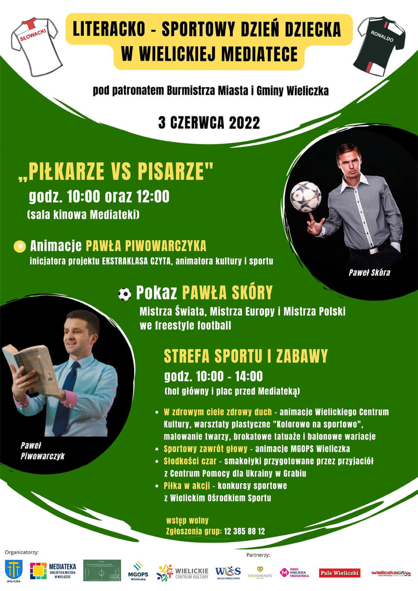 Burmistrz Wieliczki Artur Kozioł oraz Mediateka-Biblioteka Miejska w Wieliczce serdecznie zapraszają na literacko-sportowy Dzień Dziecka w Wielickiej Mediatece.