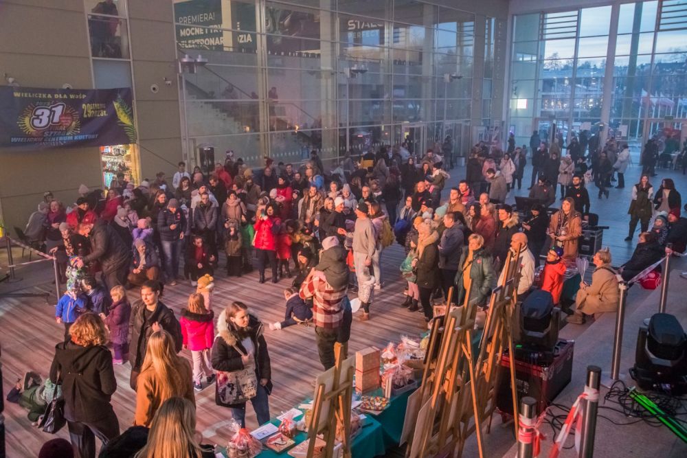 W ostatnią niedzielę stycznia tradycyjnie już na ulicach naszego miasta od wczesnych godzin porannych do późnego wieczora spotkać można było wolontariuszy z puszkami i charakterystycznymi „wośpowymi” czerwonymi serduszkami. Wyjątkowy klimat tego dnia zapewnił szereg koncertów i atrakcji przygotowanych przez sztab Wielickiego Centrum Kultury, działający przy szczególnym wsparciu Burmistrza Miasta i Gminy Wieliczka Artura Kozioła oraz partnerów tego wydarzenia w Centrum Edukacyjno-Rekreacyjnym „Solne Miasto”. Na scenie wystąpiły zespoły Drużyna A, Reflection, DeFlik & Ham Of the Sky, Latające Talerze oraz wokalista i kompozytor Mateusz Mijal. W czasie muzycznych występów publiczność mogła skosztować wyśmienitych „słodkości od serca” przygotowanych przez Koła Gospodyń z Gminy Wieliczka - Jankówki, Węgrzc Wielkich, Czarnochowic, osiedla Kościuszki, Pawlikowic i Kokotowa.