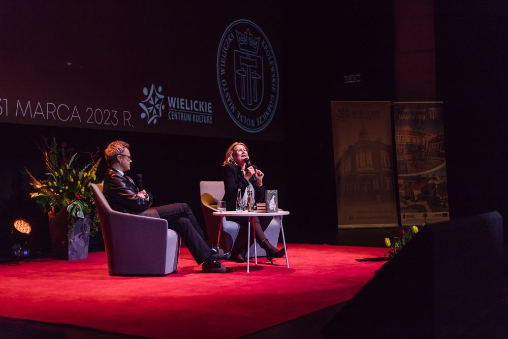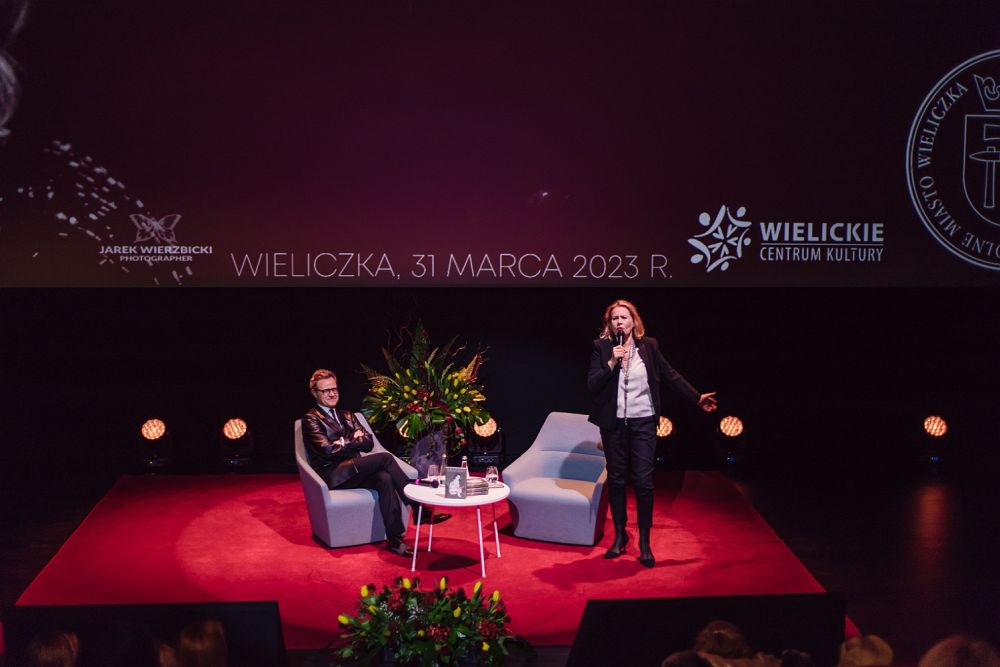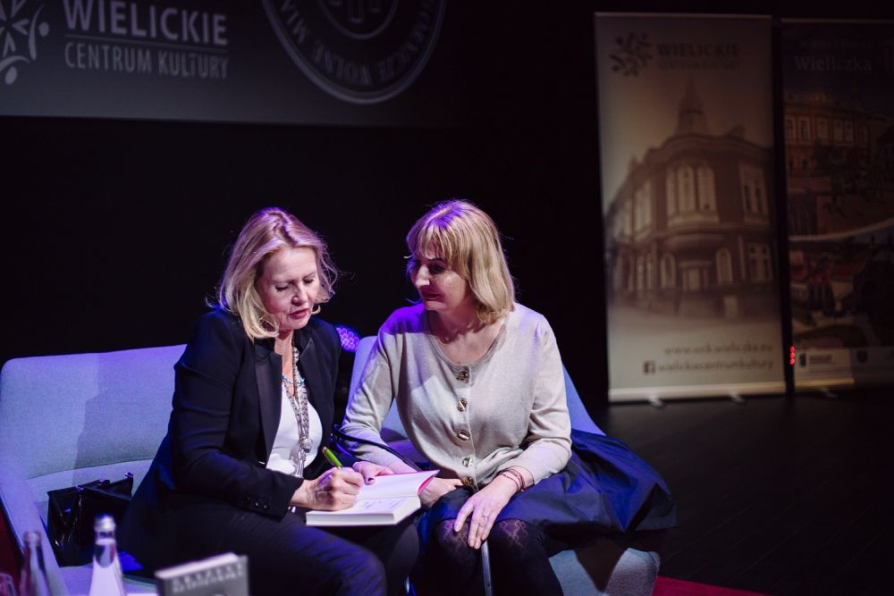 W ramach spotkania publiczność przysłuchiwała się interesującej konwersacji i fascynującym, barwnym opowieściom pani Grażyny. Zgromadzeni mieli również okazję wysłuchać wierszy Wisławy Szymborskiej, które gwiazda zacytowała specjalnie dla wielickiej publiczności.