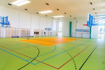 Hala gimnastyczna wybudowana została od strony północnej rozbudowanego w pierwszym etapie budynku szkoły. Zawiera ona boisko szkolne o wymiarach 20 x 40 metrów, od strony północnej i zachodniej boisko otoczone jest murem oporowym, a od strony wschodniej do budynku sali gimnastycznej przylegają podest z podnośnikiem oraz pochylnia dla osób niepełnosprawnych. Koszt inwestycji to blisko 4,5 mln zł.