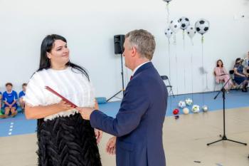 Pani Karolina Kozłowska- Przedszkole Samorządowe im. Jana Latuska w Mietniowie.4 września podczas Gminnego Rozpoczęcia Roku Szkolnego w Byszycach Burmistrz Wieliczki złożył również gratulacje dyrektorom, którzy za sprawą wygranych konkursów kontynuują w kolejnych latach bądź rozpoczynają pracę zawodową na stanowisku dyrektora.