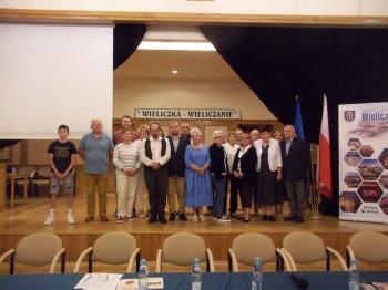 Kończąc spotkanie J. Duda powiedziała: „Dziękuję prelegentom za udział w 42 spotkaniu „Wieliczka-Wieliczanie” Bis! i wygłoszone prelekcje. Proszę o przesłanie tekstów wypowiedzi na mój adres internetowy w celu opracowania relacji ze spotkania. Zapraszam wszystkich na kolejne 43 spotkanie „Wieliczka-Wieliczanie” Bis! w dniu 27.09. (środa) b.r. w sali „Magistrat” o godz.16.00-tej pt. „45 rocznica (1978-2023) wpisu Kopalni Soli „Wieliczka” na I Listę Dziedzictwa Kulturowego i Przyrodniczego UNESCO i 10 rocznica (2013-2023) wpisu Zamku Żupnego na Listę UNESCO.”. KPW 2.09. o godz.14.00-tej spod „Magistratu” udaje się busem do Bronowic na XXI Święto Ulicy Włodzimierza Tetmajera, 8.09. (piątek) o godz.9.15 udajemy się z Krakowa z przystanku na Cichym Kąciku autobusem nr 109 na Bielany do klasztoru Kamedułów, a 26.09. (wtorek) o godz.10.00 -tej spotykamy się w Krakowie w Muzeum Czartoryskich- Klasztorek ul. Pijarska 15-zwiedzanie z przewodnikiem. Zapraszam także: 13.09. (środa) godz. 15.15 - 8 spotkanie Zarząd KPW XVIII kadencji w Wielickim Centrum Kultury, 16.08. (sobota) godz.15.30. - Wieliczka, sala „Magistrat” - Zebranie Sprawozdawcze KPW, 17.08. (niedziela) o godz.11.00-tej - w Wieliczce spotkanie przy pomniku Odrodzenia Polski - w 84 . rocznicę agresji ZSRR na Polskę 17.09.1939 r.- oddajemy hołd Polakom, ofiarom tej napaści m. in wieliczanom, oficerom WP zamordowanym w 1940 r. w Katyniu, 30.09. (sobota) b.r. w Wieliczce obchody 20. lecia Małopolskiego Związku Regionalnych Towarzystw Kultury. Prowadząca spotkanie wręczyła prelegentom upominki książkowe od Burmistrza Miasta i Gminy Wieliczka przygotowane przez Justynę Kozioł z Wydziału Kultury Urzędu Miasta i Gminy Wieliczka. Dziękujemy. Wykonano wspólne zdjęcie z napisem „Wieliczka-Wieliczanie” (foto). W spotkaniu uczestniczyło 46 osób w tym 25 członków KPW: Eugeniusz Bieniek, Grażyna Bieniek, Marta Borowiec, Antoni Cieślik, Stanisława Cygankiewicz, Katarzyna Czubak, Jadwiga Duda, Halina Dyląg, Marian Dyląg, Barbara Falbierska, Maria Gurgul, Urszula Gawlik, Wiesław Jasiński, Krzysztof Kasprzyk, Elżbieta Kawecka-Cebula, Anna Kisiel, Teresa Kruczek, Marta Lelito, Anna Młynarczyk, Aleksandra Pasek, Adam Poznański, Zofia Prochwicz, Marian Sipióra, Anna Ślęczka, Tadeusz Ziobro. Byli także: Aleksandra Nocuń, Melania Gurgul, nauczycielka w LO i przewodniczka po Wieliczce, Maciej Rzepecki, absolwent Szkoły Podstawowej nr 2 w Wieliczce, Zbigniew Dymitruk i Leszek Trojan z IPN w Wieliczce, Bogdan Wereszczyński. Przebieg spotkania fotografowali: Jadwiga Duda, Krzysztof Kasprzyk. Opiekę nad salą „Magistrat” sprawowała Małgorzata Łyżczarz.