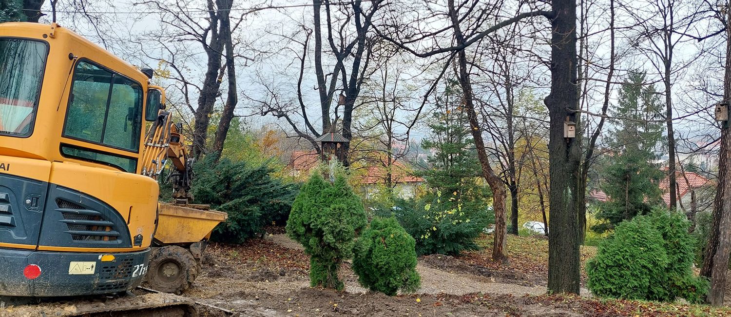 Trwa realizacja kolejnego zadania w ramach projektu "Zielonego Miliona Gminy Wieliczka 2023" pn."Rewitalizacja zieleni parku przy kościele św. Sebastiana w Wieliczce".