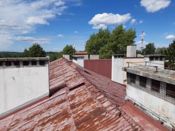 Prace budowlane rozpoczęte przez tut. Zarząd od połowy sierpnia obejmowały m.in.: rozebranie ponad 1300m2 istniejącego pokrycia dachu oraz daszków nad wejściami do budynku szkoły, całkowity demontaż ołacenia dachu, wraz z jego odwodnieniem, częściową renowację drewnianej konstrukcji nośnej, naprawę i ocieplenie kominów oraz wyłazów dachowych, montaż stopni i ław kominiarskich, remont instalacji odgromowej oraz prace naprawcze i malarskich.