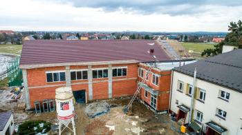 Dzięki prowadzonej inwestycji placówka zyska nowe dwukondygnacyjne skrzydło, w którym znajdą się cztery sale lekcyjne, hala sportowa, szatnie, sanitariaty i pomieszczenia zaplecza sali gimnastycznej, a także pokój nauczycielski wraz z pomieszczeniem socjalnym.
