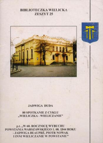 Wspomnę, że 25.08. 2004 . zorganizowałam 80 spotkanie z cyklu „Wieliczka-Wieliczanie” pt. „W 60 tą rocznicę wybuchu Powstania Warszawskiego 1.08.1944 roku -Jadwiga Beaupre, Piotr Nowak i inni wieliczanie w powstaniu” (2004) a relacje opublikowałam w zeszycie 25 „Biblioteczki Wielickiej”. Prelegentem na spotkaniu był Piotr Boroń, v-ce dyrektor ds. naukowych Muzeum Armii Krajowej w Krakowie. Oto jego wypowiedź: