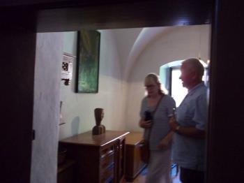 Po wysłuchaniu historii benedyktynek w Staniątkach schodami udaliśmy się do korytarza wschodniego klasztoru, gdzie z jednej strony jest ściana pamiątek po bombardowaniu klasztoru przez wojska rosyjskie 11 grudnia 1914 r., w czasie którego zginęło dwóch kapłanów: Wojciech Płukasz i Jan Kurcz. Na ścianach znajdują się też olejne obrazy obrazujące historię klasztoru a pod nimi cele, w których mieszkają mniszki - jedną zwiedzaliśmy. Następnie udaliśmy się do sali, w której była wystawa aniołów na obrazach i figurach z kościoła i klasztoru oraz do muzeum klasztornego.