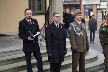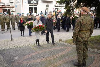 W imieniu Miasto i Gmina Wieliczka symboliczną wiązankę kwiatów pod pomnikiem złożył Rafał Ślęczka - Burmistrz Miasta i Gminy Wieliczka w asyście Wiceburmistrza ds. Rozwoju Michał Roehlich oraz Prezesa Solne Miasto w Wieliczce Tomasz Broniowski.