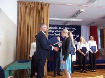 Wprowadzono sztandar szkoły. Zaśpiewano hymn państwowy „Jeszcze Polska nie zginęła” . Głos zabrał Lucjan Rówiński podkreślając, jak ogromną rolę odgrywają nauczyciele w naszym społeczeństwie: „Nauczyciele są przewodnikami młodego pokolenia. Dzięki Wam uczniowie rozwijają swoje talenty, odkrywają pasje i przygotowują się do dorosłego życia. To Państwa codzienna praca kształtuje naszą wspólną przyszłość. Dziękujemy za poświęcenie, cierpliwość i serce, które wkładacie w edukację.”. Następnie razem z Tomaszem Machnikiem wręczali 35 nauczycielkom i nauczycielom dyplomy, (a co za tym idzie nagrody pieniężne) - uhonorowanym za wyjątkowy wkład w rozwój edukacji w naszej gminie. Wyróżnieni nauczyciele: