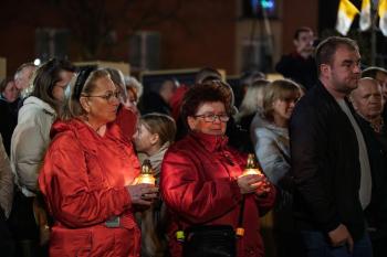 W skupieniu i zadumie, w pełnej godności ciszy, mieszkańcy pochylili głowy – łącząc się we wspólnym czuwaniu modlitewnym pod Pomnikiem św. Jana Pawła II.