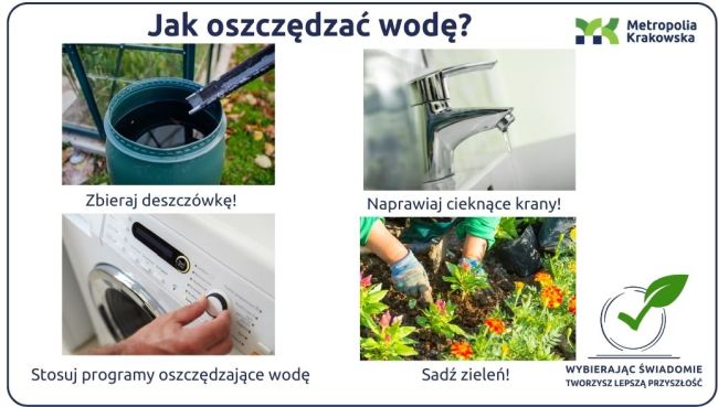 - promowanie oszczędzania wody w kampanii edukacyjno-informacyjnej w Gminie Wieliczka m.in. ulotki z pomysłami jak oszczędzać wodę,
