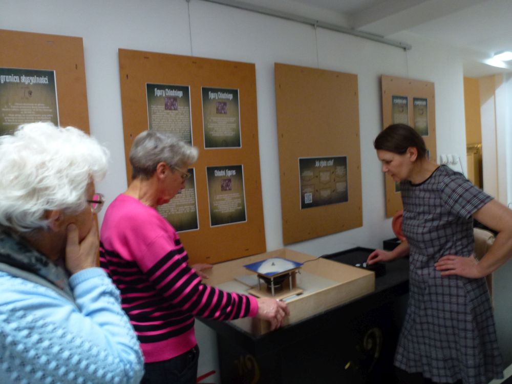 Dyplom ofiarowała Jadwiga Borucka, córka śp. Józefa Adamczyka. O wuju J. Adamczyku pisałam na łamach „Głosu Wielickiego 24” nr 8/2025. W wycieczkach z KPW uczestniczyli: Eugeniusz Bieniek, Jadwiga Duda, Halina i Marian Dyląg, Grażyna Hojda, Jan Matzke, Zofia Prochwicz, Małgorzata Ślusarczyk Danuta Wawrzaszek, Małgorzata Złomek oraz Polan Wanda z koleżanką Krystyną, Barbara Rosławiecka ze SAUJ, Andrzej Skalski, emerytowany fizyk z AGH, Janina Woźniak. Serdecznie dziękujemy Pani Agnieszce Tokarz za przybliżenie nam siły mechaniki i światła-dźwięku poprzez pokazy na zgromadzonych eksponatach. Relacja ukazała się w miesięczniku „Głos Wielicki 24” nr 12/2025.
