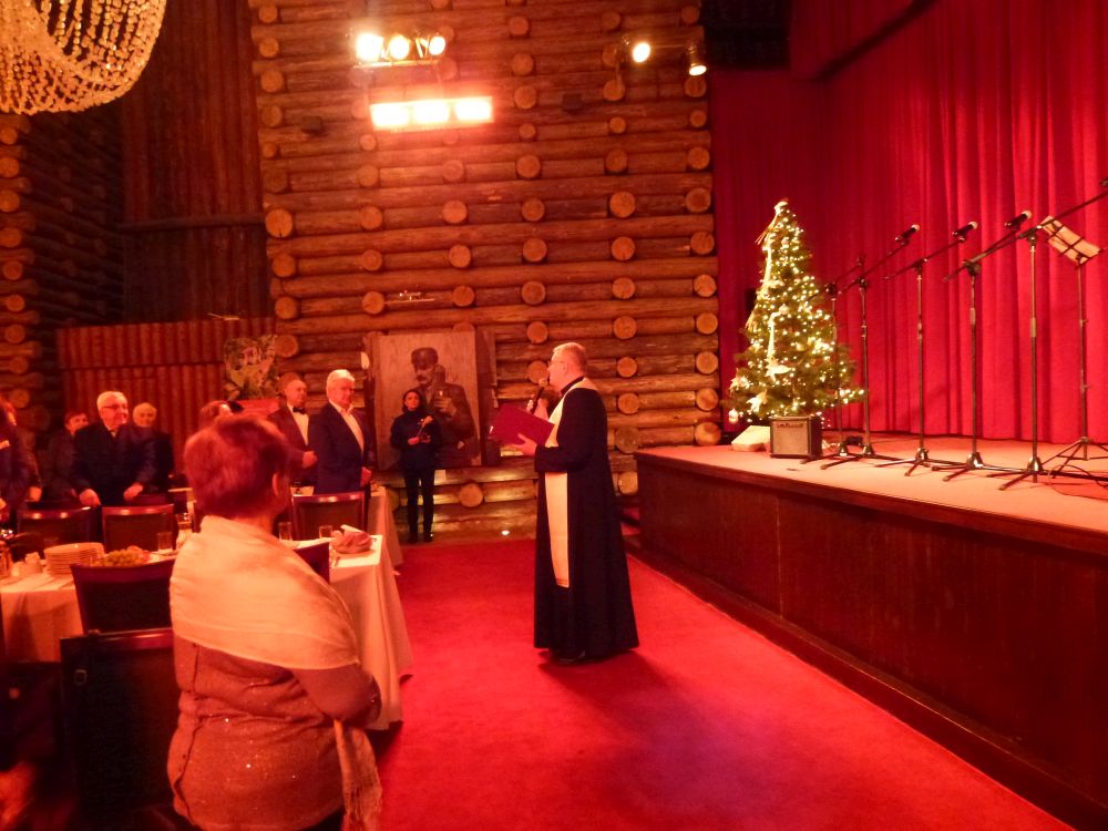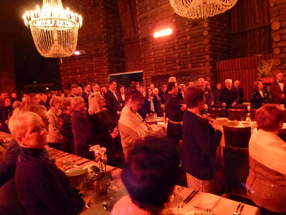 Gratulujemy!. Na estradzie wystąpił wielicki zespół Yanabanda z kolędami i pastorałkami. Publiczność występ nagrodziła brawami. Następnie Pan Dyrektor przywitał zebranych i złożył życzenia. Ksiądz doktor Wojciech Olszowski, proboszcz Parafii pw. św. Klemensa w Wieliczce, odczytał fragment Ewangelii św. Łukasza o Narodzeniu Jezusa, pobłogosławił opłatki, złożył wszystkim życzenia. Uczestnicy uroczystości składali sobie życzenia i łamali się opłatkami. Następnie wszyscy spożywali przysmaki leżące na stole, częstowali się barszczem czerwonym z krokietem, ciastem.